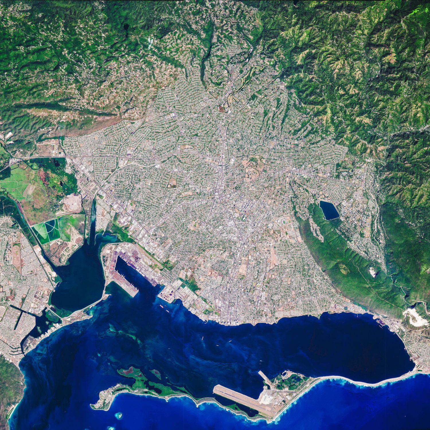 Обогреватель-картина "Спутниковое фото Кингстона столицы Ямайки"