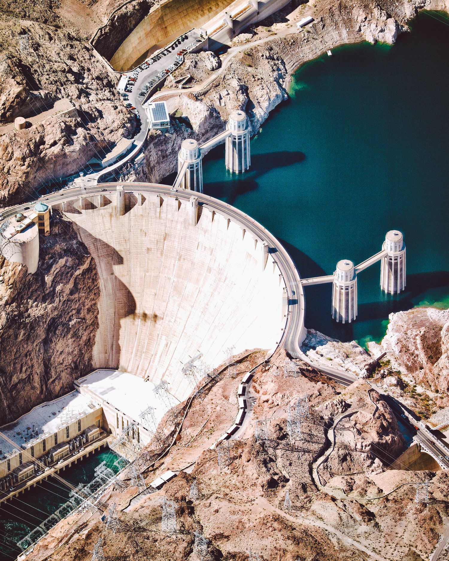 Плотина Гувера, бетонная арочно-гравитационная плотина в Черном каньоне реки Колорадо, расположенная на границе Невады и Аризоны
